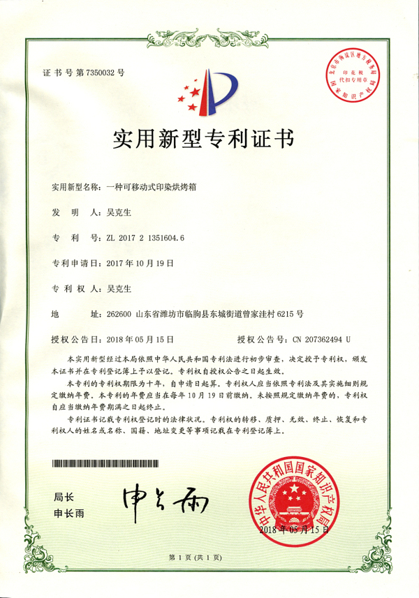 實(shí)用新型專利證書